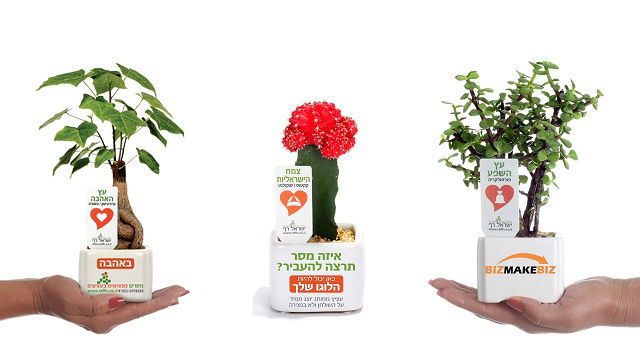 תנו עציץ ממותג מתנה בכנסים או מתנה באירועים עסקיים עם ברכות שונות שגשוג, הצלחה, צמיחה, שפע, אושר ועוד